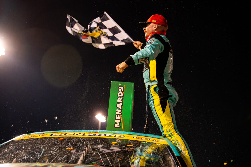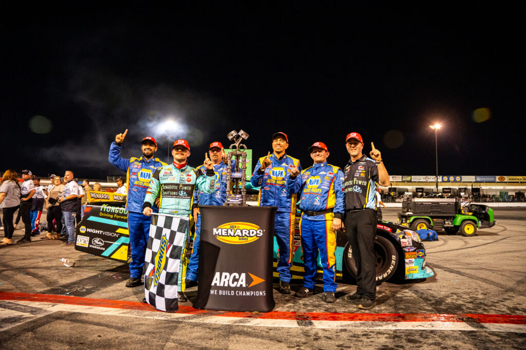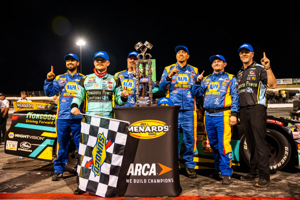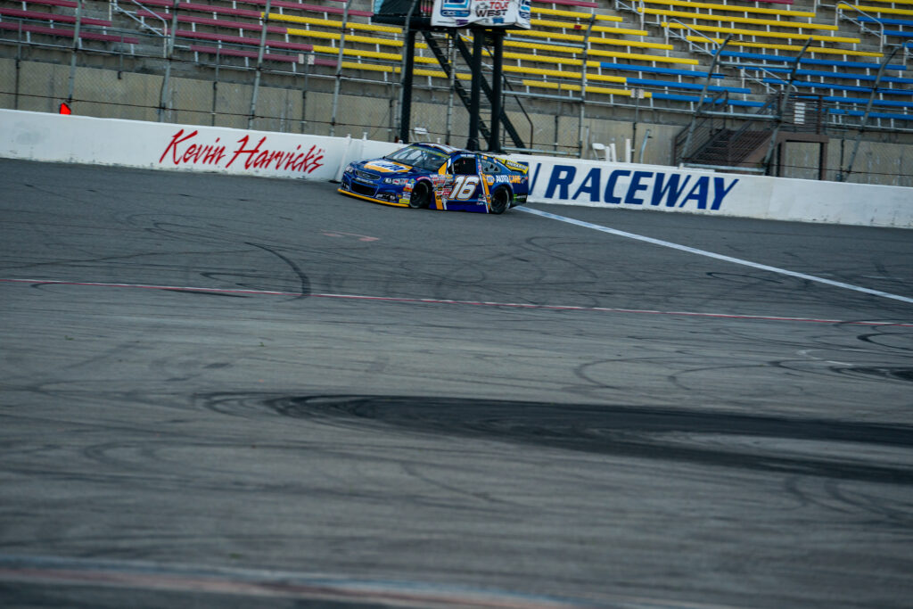BAKERSFIELD, Calif. – Mason Massey won his his debut in the ARCA Menards Series West at Kevin Harvick’s Kern Speedway on Saturday night.