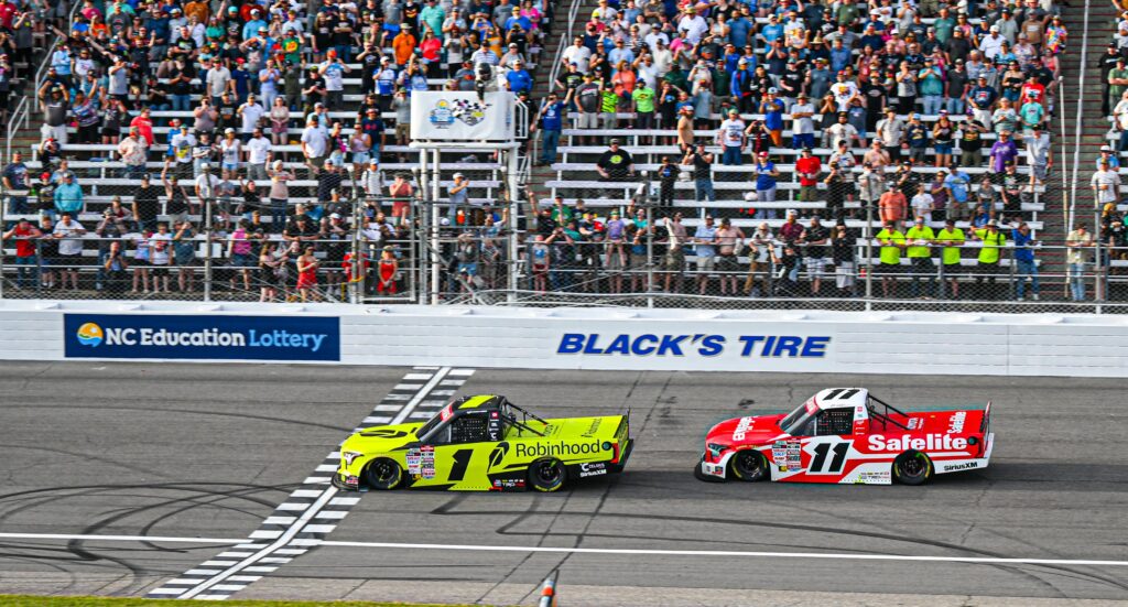 ROCKINGHAM, NC – Corey Heim held off TRICON Garage teammate, Kaden Honeycutt to win Friday’s Black’s Tire 200 at Rockingham Speedway. Heim, who is only competing in his third NASCAR